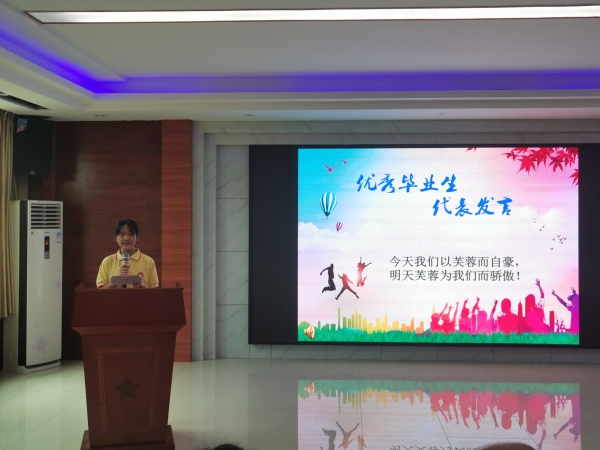 接著,進行優(yōu)秀畢業(yè)生表彰。在《畢業(yè)歌》聲中,優(yōu)秀畢業(yè)生邁著自信的步伐,走上了頒獎臺,學校領導為其頒發(fā)了證書及合影留念。隨后,優(yōu)秀學生代表和家長代表用自己真摯的語言滿懷深情地表達了對學校及老師們的感激之情。