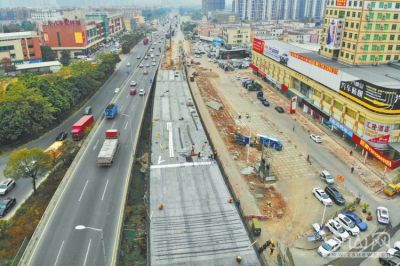 105國道改建工程沙朗立交橋已經(jīng)鋪設(shè)好混凝土,計(jì)劃春節(jié)前通車。本報(bào)記者 繆曉劍 攝
