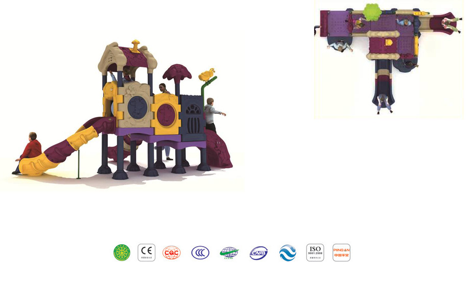 | 工藝 | 產(chǎn)品鐵件經(jīng)防銹除油后噴漆噴粉,采用高溫電磁烤漆工藝,防銹性能特強,游戲平臺是全片式碳素鋼板沖壓成形,平臺表面鉆小孔具有防滑作用,游戲架滑梯及鉆桶類均由進口食品級塑料經(jīng)先進的真空滾塑成型技術(shù)鑄造制成,它們均含有防靜電及防紫外線成份,色彩恒久。 |