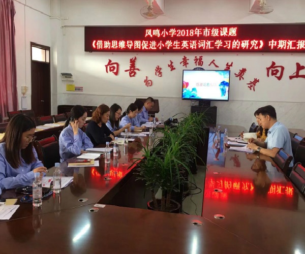 秋,是豐收的季節(jié),是希望的開始。2020年11月16日下午,東鳳鎮(zhèn)鳳鳴小學(xué)英語課題《借助思維導(dǎo)圖促進(jìn)小學(xué)英語詞匯學(xué)習(xí)的研究》中期匯報(bào)在會(huì)議室順利舉行。中山市教研員張?zhí)﹦偫蠋煛⒅猩绞袑?shí)驗(yàn)小學(xué)何娟老師、鳳鳴小學(xué)校長劉松、副校長莊惠茜以及課題組成員參加了此次會(huì)議。