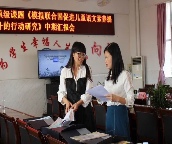 接著,鎮(zhèn)課題專家組的陳紅主任根據推進情況進行了專業(yè)而細致的點評。她首先肯定了課題組的成員所進行的富有成效的工作,贊賞《模擬聯合國促進兒童語文素養(yǎng)提升的行動研究》選題富有新意,很有研究價值。目前,“模擬聯合國”多數是在大學、高中階段開展研究,鮮少在小學進行。課題組成員能大膽嘗試,進行創(chuàng)造性工作。同時,陳主任也指出課題推進當中的不足,指導課題組老師可以收集心得收獲、圖片、抓拍視頻,準備更有價值的資料,勉勵老師們再接再厲,把課題做得更加扎實細致。