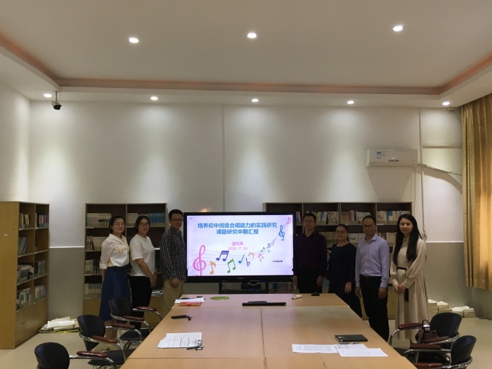 各課題主持人分別從課題研究的背景、前階段的研究概況、研究反思與困惑等方面對課題研究的進(jìn)度、困惑、構(gòu)思進(jìn)行總結(jié)與反思。其中,音樂科組的《培養(yǎng)初中班級合唱能力的實(shí)踐研究》結(jié)合學(xué)校社團(tuán)活動的開展、競賽類成果、學(xué)校午唱等方面進(jìn)行較為詳細(xì)的總結(jié),認(rèn)為策略研究部分需下功夫,提高定性評價的科學(xué)性。