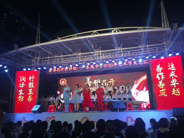 悠揚(yáng)的國歌在耳邊響起,文藝晚會正式拉開帷幕。此次晚會采用線上直播和現(xiàn)場觀看的方式,與全體師生、家長等共享歡樂盛會。