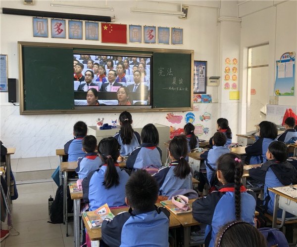 12月4日,在第六個國家憲法日來臨之際,為弘揚憲法精神,增強鳳鳴小學(xué)師生的法制意識,提高自覺尊法學(xué)法守法用法的公民意識,上午9點,鳳鳴小學(xué)開展了“學(xué)憲法,愛憲法”活動,本次活動主要以集中在教育部全國青少年普法網(wǎng)收看“憲法晨讀”網(wǎng)絡(luò)直播,同步跟讀憲法晨讀內(nèi)容,跟唱歌曲《憲法伴我們成長》等形式為主。