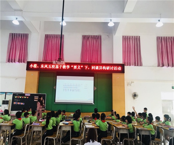 為了促進新教師的課堂教學水平,提高課堂教學實效,2019年4月23日上午,小欖、東鳳五校教學聯(lián)盟活動之新教師匯報課研討活動在鳳鳴小學舉行。本次展示活動由黎梅、姚曉燕、王京儒、黃汝穎、袁樹干、黃濤、楊小潔、周小紅、鄧蕾等九位老師分別上了一節(jié)匯報課,涉及英語、數(shù)學兩個學科。