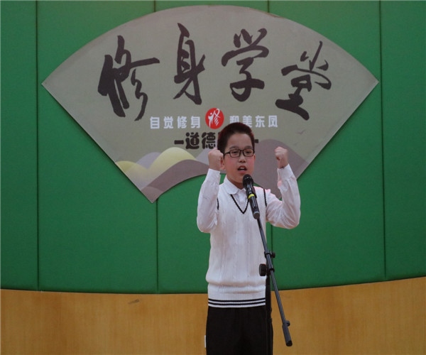 “我的祖國(guó),地大物博……我的祖國(guó),人民勤勞,千古流傳著多少美麗動(dòng)人的傳說(shuō)。這就是我雄心壯志的祖國(guó)……”4月12日,鳳鳴小學(xué)在修身學(xué)堂舉行讀書節(jié)系列活動(dòng)之——“我為祖國(guó)點(diǎn)贊”愛國(guó)主題演講比賽。