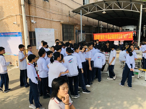 活動(dòng)當(dāng)天,眾聯(lián)社工的工作人員一早便到校擺好禁毒宣傳攤位并派發(fā)禁毒宣傳單,現(xiàn)場(chǎng)解答學(xué)生提出的問題。通過專業(yè)的解答,學(xué)生了解到毒品的危害、毒品種類、如何正確抵制毒品等知識(shí)。為加深對(duì)毒品的認(rèn)識(shí),工作人員通過展示仿真毒品模型、開展禁毒知識(shí)問、,禁毒拼圖等活動(dòng),調(diào)動(dòng)學(xué)生積極性?,F(xiàn)場(chǎng)氣氛活躍,學(xué)生紛紛表示會(huì)自覺拒絕毒品,主動(dòng)跟毒品說“no”。在工作人員組織下,學(xué)生宣讀禁毒誓言。在現(xiàn)場(chǎng)采訪環(huán)節(jié),學(xué)生表示回家,會(huì)積極和家長(zhǎng)一起參與到禁毒宣傳工作中,把禁毒工作向家庭輻射和延伸,擴(kuò)大禁毒工作覆蓋面。