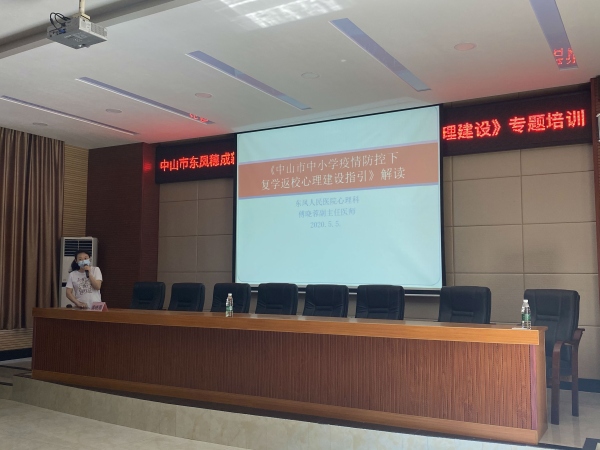 春深四月去,夏來五月新。微風不燥,陽光正好。為充分做好2020年春學期師生疫情下復學返校準備工作,進一步營造校園寬松氛圍,幫助師生更好地適應(yīng)校園生活,5月5日上午,學校要求衛(wèi)生健康副校長王永東、中山市東鳳人民醫(yī)院心理專家傅曉蓉副主任醫(yī)師蒞臨新徽學校為第二、第三批復學的全體教師作《中小學疫情下返校復學心理建設(shè)》專題培訓。