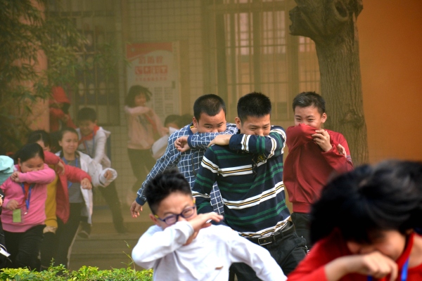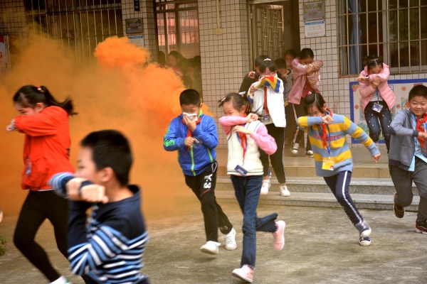 當天下午,科教樓的學生們正在上課,突然濃煙四起,瞬間,整座教學樓籠罩在煙霧中。隨著清脆響亮的火警鈴聲響起,東海學校消防演練正式開始。學校各樓層負責老師迅速沖到樓層指定地點,協(xié)助各班指揮學生疏散。學生們聽到報警信號后,迅速捂住鼻子,在老師們的指揮下有序地按照預(yù)定線路從樓梯撤走。各個樓層的重要路口分別有老師負責幫扶并搜索樓層角落有無遺漏的學生。當全校學生安全撤離到校園操場的空曠地方后,各班老師馬上清點人數(shù)及時向總指揮報告。整個過程嚴格按照預(yù)案進行,做到了組織嚴密、撤離有序。所有的學生都安全有序地順利到達指定安全區(qū)域。