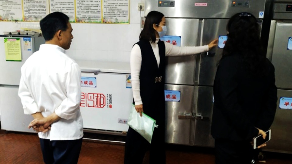 在校長(zhǎng)室,黃美英老師聽(tīng)取詢(xún)問(wèn)了開(kāi)學(xué)期間學(xué)校在安全衛(wèi)生方面的工作。隨后,黃老師來(lái)到食堂,對(duì)食材原料、輔助用料、食堂衛(wèi)生、制作流程、留樣備驗(yàn)、食堂從業(yè)人員健康證進(jìn)行了檢查。在消防安全方面,黃老師檢查了學(xué)校滅火器、消防栓、應(yīng)急通道等設(shè)施。安保方面,黃老師細(xì)致查詢(xún)了保安值班記錄、校門(mén)進(jìn)出人員登記本等。春季是傳染病高發(fā)期,在校醫(yī)務(wù)室,黃老師詳細(xì)了解了學(xué)校晨檢、自查、傳染病預(yù)防等相關(guān)方面的工作和資料。在檢查過(guò)程中,黃老師對(duì)發(fā)現(xiàn)的問(wèn)題及安全隱患和不足之處進(jìn)行了指導(dǎo)糾正。