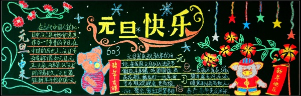 為慶祝新年的到來,烘托學(xué)校的節(jié)日氣氛,營造濃厚的校園文化氛圍。在元旦來臨之前,東鳳東海學(xué)校組織了以“慶元旦,迎新年”為主題的班級(jí)黑板報(bào)評(píng)比活動(dòng)。