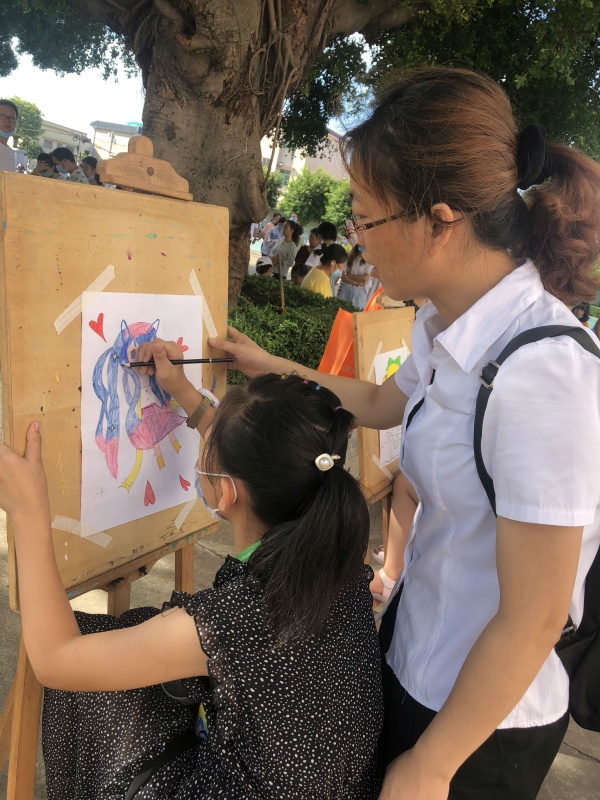 伴著悠揚的葫蘆絲,家長徜徉在新徽校園,觀賞超市班節(jié)目,欣賞各教研組精心制作的展板。有神情專注的繪畫班孩子在畫紙上描描點點,揮毫潑墨;有韻味悠長、悠揚動聽的葫蘆絲班盡情演奏,還有“隔盤對坐兩位仙,四目凝視盤里邊”的三棋班展示……超市班百花齊放,五彩斑斕。