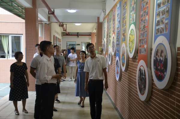 蕭達(dá)輝書記一行在學(xué)校全體行政的陪同下實(shí)地查看了校園環(huán)境和場(chǎng)室使用情況以及學(xué)校黨建陣地,并聽取了林小舟校長(zhǎng)關(guān)于暑假期間學(xué)校的教室改建、新生入學(xué)、教師工作狀態(tài)、學(xué)校黨建等工作匯報(bào)。蕭達(dá)輝書記十分重視學(xué)校增班擴(kuò)建工作的開展情況,實(shí)地細(xì)致查看了新改建的教室后,對(duì)柏苑小學(xué)積極克服困難,為學(xué)生創(chuàng)造良好學(xué)習(xí)環(huán)境的努力表示贊賞。蕭書記也提到東區(qū)黨工委、辦事處將會(huì)加快機(jī)關(guān)三幼的轉(zhuǎn)接程序,讓柏苑小學(xué)師生能盡快有更好的學(xué)習(xí)和工作環(huán)境。在與學(xué)校行政團(tuán)隊(duì)的交流中,蕭達(dá)輝書記特別關(guān)心學(xué)校教師在新學(xué)期的學(xué)習(xí)工作狀態(tài)并關(guān)切地詢問了老師們的工作、學(xué)習(xí)、生活情況,并致以節(jié)日的問候。