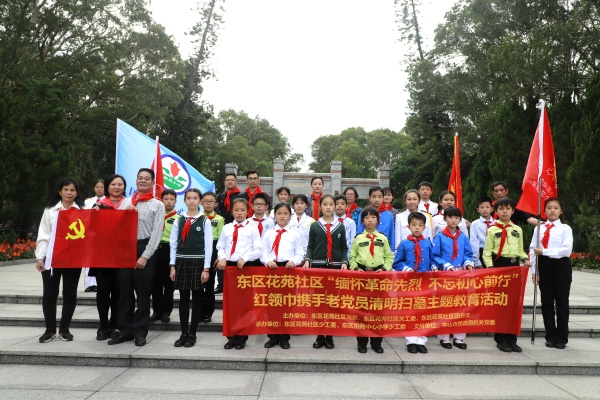 為緬懷人民英雄,理解“紅領(lǐng)巾代表紅旗的一角,是革命先烈的鮮血染成”的深刻含義,理解中國少年先鋒隊(duì)以“先鋒”命名就是學(xué)先鋒、做先鋒的內(nèi)在意義,引導(dǎo)少先隊(duì)員傳承紅色基因,培育報(bào)國志向。4月4日下午東區(qū)柏苑中心小學(xué)黨支部、少工委組織黨員、隊(duì)員代表滿懷崇敬之情參加花苑社區(qū)舉辦的“緬懷革命先烈 繼承革命遺志”紅領(lǐng)巾攜手老黨員祭英烈活動(dòng)。