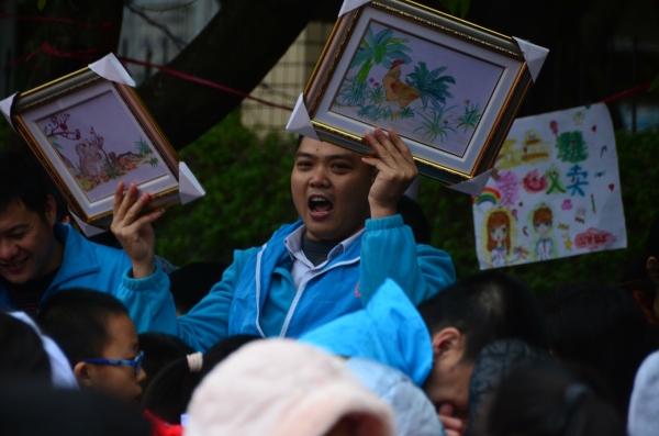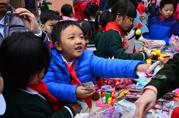 活動前期,隊員們慷慨地捐出自己閑置的學(xué)習(xí)用品、書籍、玩具、手工藝品、飾品、個人書畫作品等來義賣,各中隊通過自主招募,成立了銷售團(tuán)隊。根據(jù)學(xué)校少工委發(fā)出的倡議,檢查所有的義賣物品是否健康有益,并各出奇謀地制定銷售途徑???,活動現(xiàn)場,他們紛紛使出渾身解數(shù)熱情地招攬著前來選購的顧客!豐富的展品和興高采烈的師生愛心買家們點燃了整個校園的熱情。
