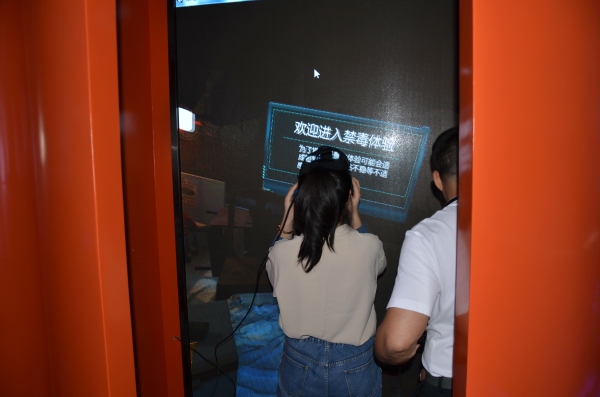 之后老師們上到二樓進(jìn)入禁毒宣傳教育廳,教育廳又分為認(rèn)識毒品、全球毒情、毒品的危害、全民禁毒、完美公益和體驗區(qū)六大展區(qū)。全球毒情展區(qū)部分,講解員一一為老師們介紹了傳統(tǒng)毒品、新型合成毒品和偽裝毒品三大類毒品,其中偽裝毒品像“跳跳糖”、“奶茶”“阿拉伯茶”是全球流行的第三代毒品,對青少年兒童具有非常強(qiáng)的欺騙性和誘惑性。通過觸摸全球毒情球,可以很直觀的了解到全球毒情。為了更進(jìn)一步的了解毒品的危害,老師們還體驗了VR毒害漫游。VR毒害漫游真實模擬吸毒之后人視力模糊、頭暈?zāi)垦?、意識渙散的感覺,通過這種直觀的感受讓人真切感受吸毒的危害。緊接著講解員帶領(lǐng)老師們進(jìn)入自述屋聆聽吸毒者的錄音,該錄音配有沙畫,真實再現(xiàn)了吸毒者因為吸毒付出的慘烈代價。自2006年以來,中山市禁毒取得了卓有成效的成績,在禁毒成果展示廳內(nèi)講解員還向老師們介紹了中山市禁毒措施和禁毒成果。