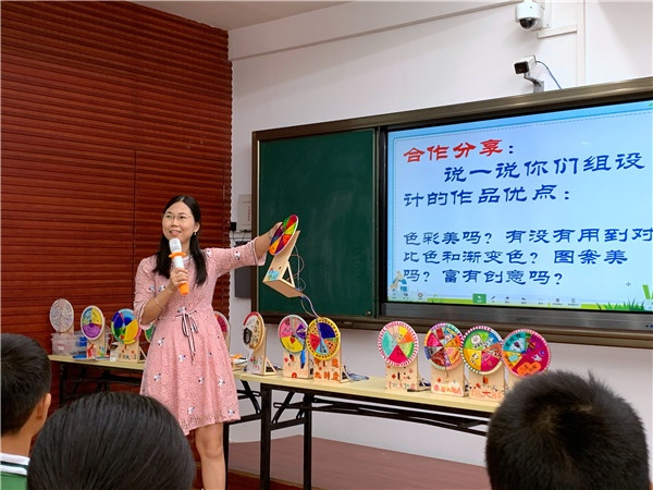 最后,劉歡桐主任對(duì)本次市級(jí)面授活動(dòng)進(jìn)行了專業(yè)性的點(diǎn)評(píng),劉主任指出本次課例《幸運(yùn)大轉(zhuǎn)盤》選題非常貼近學(xué)生的生活,趣味十足,符合學(xué)生的心理年齡特點(diǎn);整個(gè)項(xiàng)目小組合作形式,培養(yǎng)學(xué)生們合作能力和思維品質(zhì),體現(xiàn)“以學(xué)生學(xué)習(xí)為中心”的教育理念,讓每一個(gè)學(xué)生都參與其中,快樂學(xué)習(xí)。