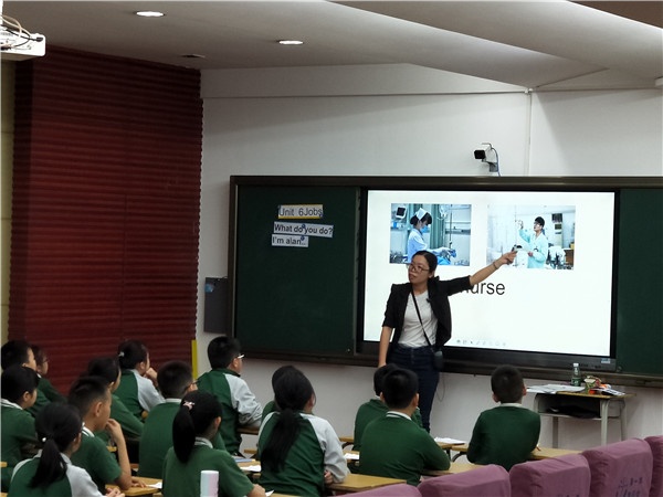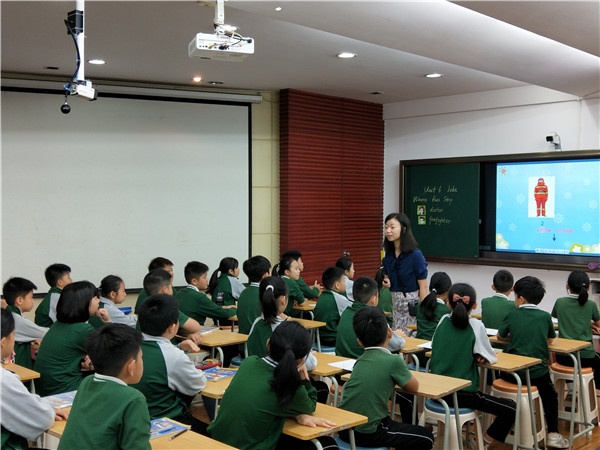此次活動(dòng)邀請(qǐng)了南區(qū)竹秀園小學(xué)主任藍(lán)韶英、石歧區(qū)體育路學(xué)校主任徐麗霞擔(dān)任評(píng)委。雍景園小學(xué)章篇、冼楊敏、鄭燕嫦、向芳艷、黃慧芳五位英語(yǔ)青年教師參與賽課。他們執(zhí)教的內(nèi)容是四年級(jí)下冊(cè)Unit 6 Jobs,每人按順序負(fù)責(zé)其中一個(gè)課時(shí)。五節(jié)參賽課,注重學(xué)生學(xué)習(xí)的過(guò)程,突出“以生為本”的教學(xué)理念,對(duì)學(xué)生學(xué)習(xí)的過(guò)程關(guān)注度很高,為實(shí)現(xiàn)教學(xué)目標(biāo)搭建了完整的語(yǔ)言支架,展現(xiàn)了教師教學(xué)理念的新穎。五節(jié)課中,老師們表現(xiàn)出色,語(yǔ)言流暢,教學(xué)設(shè)計(jì)精彩紛呈,均在教學(xué)中創(chuàng)新地使用了希沃白板,將一體機(jī)的交互功能高效地運(yùn)用到英語(yǔ)教學(xué)中,體現(xiàn)了信息技術(shù)與英語(yǔ)教學(xué)的巧妙融合。