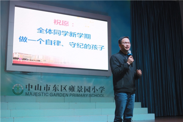新學(xué)期伊始,為加強(qiáng)學(xué)生思想道德教育,規(guī)范學(xué)生的日常行為, 雍景園小學(xué)三年級(jí)組于2月25日下午,在風(fēng)雨球場(chǎng)召開(kāi)了主題為“成功從自律開(kāi)始”的級(jí)組會(huì)議。本次會(huì)議由級(jí)組長(zhǎng)巫朝安老師主講,德育處郭楊德主任做了總結(jié)點(diǎn)評(píng),三年級(jí)全體師生參加本次會(huì)議。
