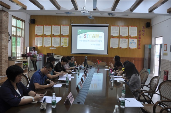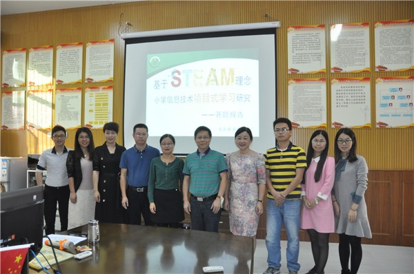 2018年11月8日下午,中山市雍景園小學(xué)宋曉玉老師主持的中山市教育科研課題《基于STEAM理念的小學(xué)信息技術(shù)項(xiàng)目學(xué)習(xí)研究》開題報(bào)告會(huì)在雍景園小學(xué)五樓會(huì)議室召開,參加開題會(huì)議的有教育部國(guó)培計(jì)劃專家、廣東省特級(jí)教師、市教研室信息技術(shù)教研員陳明宏老師,廣東省特級(jí)教師、廣東省“特支計(jì)劃”教學(xué)名師、廣東省名師工作室主持人黃偉祥主任,東區(qū)教育事務(wù)指導(dǎo)中心張卉丹老師,東區(qū)雍景園小學(xué)歐淑霞校長(zhǎng)、黃玉嬋副校長(zhǎng)、余建勇主任和課題組的全體成員。