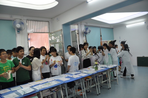 六年級(jí)的展示形式豐富。老師們因地制宜,利用六4班課室空間比較大的優(yōu)勢(shì),“搭起”了一個(gè)小小的舞臺(tái),讓學(xué)生展示自己對(duì)經(jīng)典詩(shī)詞學(xué)習(xí)的收獲,。詩(shī)詞創(chuàng)作、個(gè)人活動(dòng)感悟、誦讀表演齊上陣,一曲《琵琶行》哀而不傷,一首《游子吟》訴不盡的感恩養(yǎng)育情,一段《風(fēng)箏誤》跳出了對(duì)古典詩(shī)詞的向往與熱愛,一首《將進(jìn)酒》激昂豪邁。無論是表情還是服裝,孩子們都努力做到最好,讓參觀的同學(xué)老師都能樂在其中。