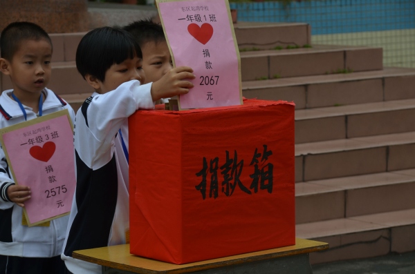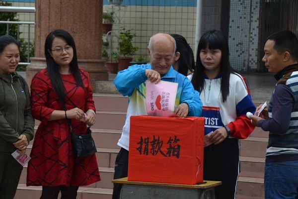 大會(huì)第二項(xiàng),愛(ài)心企業(yè)及個(gè)人善款捐贈(zèng)儀式。華南國(guó)際吉東教育集團(tuán)慈善基金捐款10000元、中山市客家商會(huì)李金東先生捐款10000元、民樂(lè)班學(xué)生代表盧女士捐款1000元、校外輔導(dǎo)員洪瑞久爺爺捐款300元、全體教職工共捐款13040元。最后,各班學(xué)生代表紛紛上臺(tái)為可親可敬的周建華老師捐獻(xiàn)愛(ài)心,共捐30720.5元,表達(dá)了孩子們對(duì)周老師最真摯最美好的祝愿。還有很多家長(zhǎng)前來(lái)捐款,沒(méi)有留下姓名。這次活動(dòng)共計(jì)捐款73260.5元。
