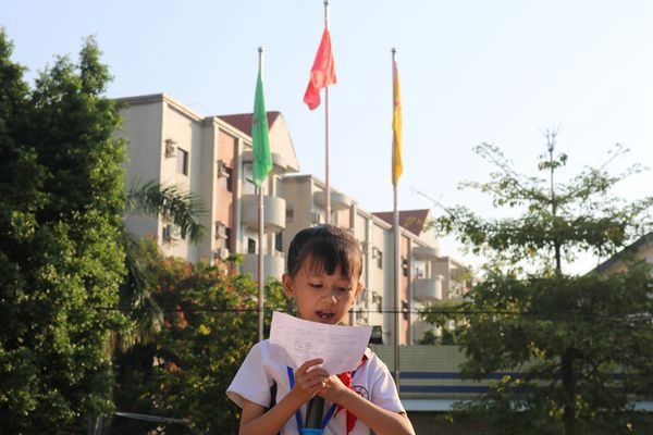 隨后,三(2)中隊黃碧珍隊員代表作了“勿忘歷史,不負英魂”國旗下講話,提出認同英雄,就是認同正確的價值觀;追隨英雄,就是追隨真善美;頌揚英雄,就是頌揚正能量。無論時代怎樣變化,英雄始終是我們內(nèi)心的堅守、追隨的真理、謳歌的對象。勿忘歷史,不負英魂!并一起向烈士敬禮,向偉大的祖國五星紅旗敬禮!