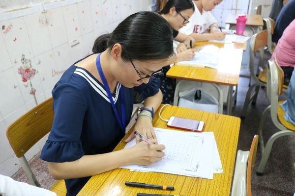 本次比賽內(nèi)容統(tǒng)一命題,比賽字體規(guī)定用楷書書寫,力求書寫正確規(guī)范、美觀大方;字體端正勻稱,大小適中;間架結(jié)構(gòu)合理,行筆流暢,力度適中;筆法自然,布局合理,格調(diào)統(tǒng)一,落款合理。比賽現(xiàn)場老師們認(rèn)真地品味著漢字的藝術(shù)魅力,各顯身手。現(xiàn)場的教師懷著激動的心情提起了筆,用心書寫著每一個筆畫、每一個漢字。他們的筆順規(guī)范、筆畫清楚,所寫字體各具特色,形神兼?zhèn)?,或蒼勁有力,或雋永飄逸,或清秀雅致,或端正整潔……一幅幅作品中蘊(yùn)含了學(xué)校教師對書法的熱愛。