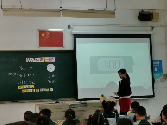 首先是二年級組的教師進行賽課。李燕老師執(zhí)教《7的乘法口訣》,由拼七巧板進入新課,學生熱愛拼圖,老師語言簡潔有親和力,課堂氛圍活躍;鄭潔梨老師與李燕老師同課異構,鄭老師的課堂充滿童趣,將教學內容與小故事融為一體,寓教于樂,調動了孩子們的積極性;林惠玲老師執(zhí)教《9的乘法口訣》,林老師的課堂層層遞進、環(huán)環(huán)相扣,帶領孩子們在不斷探索之中獲得樂趣;田靜老師與林老師同課異構,田老師在課堂中運用了希沃白板、ppt演示和教學光盤,多種信息技術使用嫻熟,游戲設置充分調動了學生的主觀能動性,課堂氛圍好;秦偉枝老師執(zhí)教《認識時間》,課堂輕松有趣,讓孩子們獲得數(shù)學趣味的同時,引導孩子們發(fā)現(xiàn)問題、提出問題、解決問題。