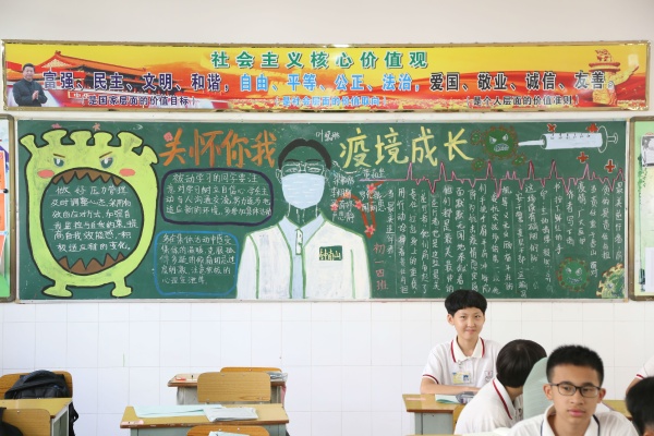 為推動同學(xué)們防疫期間心理健康,引導(dǎo)同學(xué)們關(guān)注自身心理健康,以陽光積極的心態(tài)去戰(zhàn)勝疫情,東升中學(xué)舉行以“關(guān)懷你我,‘疫’境成長”為主題的心理主題黑板報評比活動。黑板報主要內(nèi)容為疫情期間的心理健康的維護、自我防護等相關(guān)知識。據(jù)悉,6月份為東升中學(xué)“關(guān)懷你我,‘疫’境成長”心理月宣傳活動,本次黑板報評比活動是心理月宣傳系列活動之一。