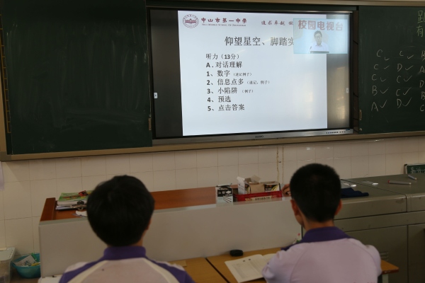 中山市初三中考英語聽說考試即將進(jìn)行。為了讓東升中學(xué)學(xué)生在中考中取得佳績,6月18日下午,東升中學(xué)有幸請來中山一中初中部范振海副校長(現(xiàn)兼任西區(qū)中學(xué)校長)對初三學(xué)生英語聽說考試進(jìn)行答題技巧指導(dǎo)。范校長曾任東升鎮(zhèn)旭日中學(xué)校長多年,是東升人民的老朋友。范校長的講座題為《仰望星空,腳踏實(shí)地》。作為資深的英語專業(yè)教師,他高屋建瓴地從宏觀和微觀的角度對英語聽說考試進(jìn)行了精準(zhǔn)到位的分析,并從對話理解、短文理解、朗讀短文、情景對話、口頭作文等五個方面各個擊破,為在座的學(xué)生提供了很好的方法指導(dǎo)。由于防疫需要,本次指導(dǎo)講座是利用校園電視臺進(jìn)行“現(xiàn)場直播”的,東升中學(xué)初三全體學(xué)生和全體英語老師實(shí)時到班參與和觀看了指導(dǎo)講座。
