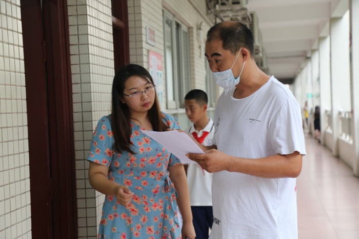 新學(xué)校是所怎樣的學(xué)校,孩子們該如何適應(yīng)順利完成在學(xué)校的生活學(xué)習(xí),學(xué)校辦學(xué)情況如何,老師們情況如何?帶著這樣的疑惑,家長們被請到孩子們各自的教室入座。寬敞明亮的教室,整潔的書桌,講臺大大的一體機,加上室內(nèi)空調(diào)襲襲的涼風(fēng)吹來,教室較為舒適的環(huán)境一下子接近了家長們與學(xué)校的距離。吳校長以此為切入點,向家長們重點介紹了學(xué)校的軟硬件情況。學(xué)校優(yōu)美的環(huán)境、光榮的歷史、較為先進(jìn)舒適的教學(xué)設(shè)施設(shè)備、良好的師資力量以及良好的教學(xué)成績,都給家長們留下了深刻印象。