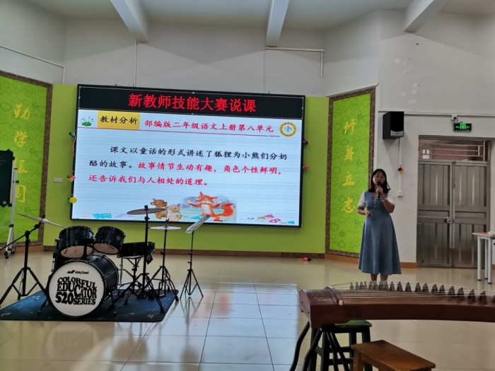 大賽內(nèi)容包括說(shuō)課、新課程標(biāo)準(zhǔn)知識(shí)測(cè)試、才藝展示和粉筆字等幾個(gè)方面,以此來(lái)考察教師教學(xué)能力。學(xué)校三位青年教師參與了本次大賽。在說(shuō)課環(huán)節(jié),各參賽選手準(zhǔn)備充分,教學(xué)過(guò)程設(shè)計(jì)合理,語(yǔ)言表達(dá)準(zhǔn)確生動(dòng),教學(xué)方法獨(dú)特新穎。選手們說(shuō)課自然流暢、端莊大方,富有創(chuàng)意的語(yǔ)言,揮灑自如的儀態(tài)彰顯出了青年教師扎實(shí)的教學(xué)基本功以及洋溢著朝氣與熱情的風(fēng)采。仇志誠(chéng)老師的說(shuō)課內(nèi)容《蹲踞式起跑》,以活潑輕松又不失嚴(yán)謹(jǐn)?shù)恼f(shuō)課風(fēng)格贏得大家的掌聲,接著肖惠支老師的說(shuō)課《鄉(xiāng)下人家》帶領(lǐng)大家領(lǐng)略了鄉(xiāng)下的自然風(fēng)光,最后王文暖老師的說(shuō)課內(nèi)容為《狐貍分奶酪》,給大家呈現(xiàn)出一節(jié)非常精彩的低年級(jí)課程。接下來(lái),三位選手分別進(jìn)行了才藝展示以及粉筆字書(shū)寫(xiě),展示了自己的綜合素養(yǎng)。