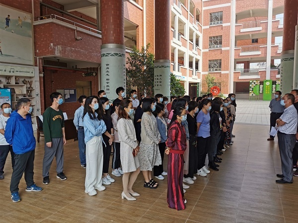 活動伊始,由羅東校長講話,強(qiáng)調(diào)了打好新型冠狀病毒疫情防控阻擊戰(zhàn)的重要性,說明了落實細(xì)化學(xué)校疫情防控應(yīng)急演練的必要性。接著,由胡天用主任和侯超老師組織全體教職工開展情境演練。