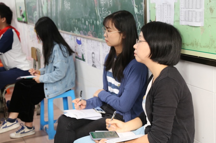 一大早,督導組成員分別步入教室,隨機旁聽了初一書法、地理、語文、數(shù)學以及初三英語、物理和數(shù)學等八節(jié)課。之后,學校師生進行了問卷調查。督導組還查閱了學校資料并巡視了校園。