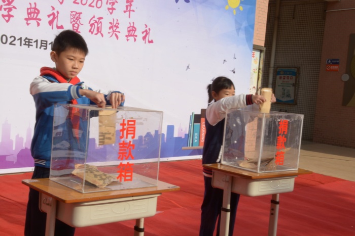 年年歲歲慈善行,世世代代博愛心。梁校長致辭后,舉行的是為慈善萬人行捐款活動。當(dāng)接到慈善捐款的工作,各班班主任就立刻發(fā)動孩子們積極參與捐款活動,盡自己的一份力,為有需要的人捧出一份關(guān)懷,獻(xiàn)上一片愛心。同學(xué)們紛紛拿出自己的零花錢,獻(xiàn)出自己的一點愛心,零花錢多的捐多一點,零花錢少的捐少一點,數(shù)目多少并不重要,重要的是孩子們擁有的那一顆博愛之心。在捐款儀式上,各班代表有序地把善款投進(jìn)捐款箱,小小的捐款箱里,滿載著愛心,博愛涌動,讓人在寒冷的日子里,也感覺到了這一股愛的氣息。