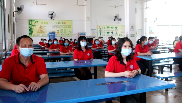 早上8:30,全體教職工齊聚階梯室進行防疫培訓。冼學峰校長詳細解讀了《東升鎮(zhèn)勝龍小學2020年春季學期學生返校復學工作方案》,明確返校復學前后工作流程,包括開學前師生的各項工作準備,開學后老師們各項工作常規(guī)及注意事項等都一一進行了全面的部署,明確職責,責任到人。通過培訓,全體教職工都能熟知各個崗位工作流程,以及突發(fā)事件應急處置方法,為確保復學工作規(guī)范有序地開展奠定了基礎。