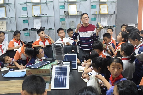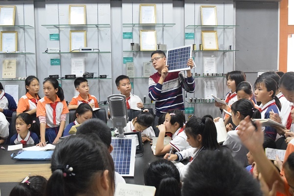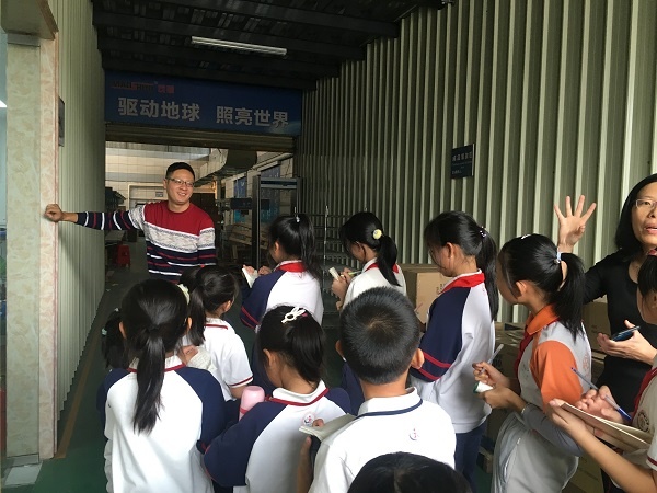 同學(xué)們帶上筆記本,認(rèn)真地記錄著。公司講解員帶領(lǐng)同學(xué)們參觀生產(chǎn)車間,按生產(chǎn)的工序,向同學(xué)們逐一介紹、講解了LED路燈、太陽能路燈的制作過程。同學(xué)們聽得津津有味,有的同學(xué)還樂此不疲地向工人叔叔、阿姨詢問制作的要點(diǎn)、技巧。