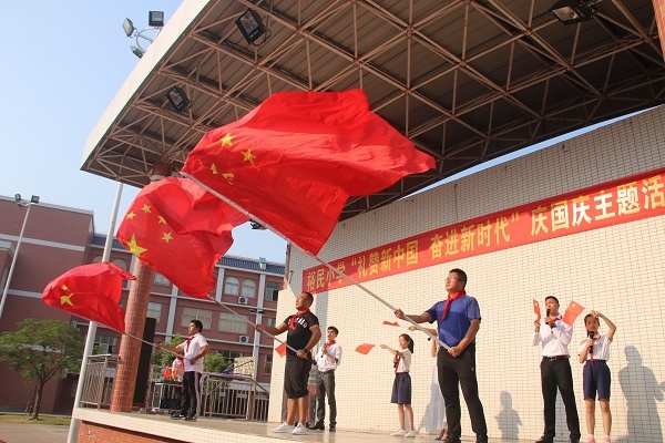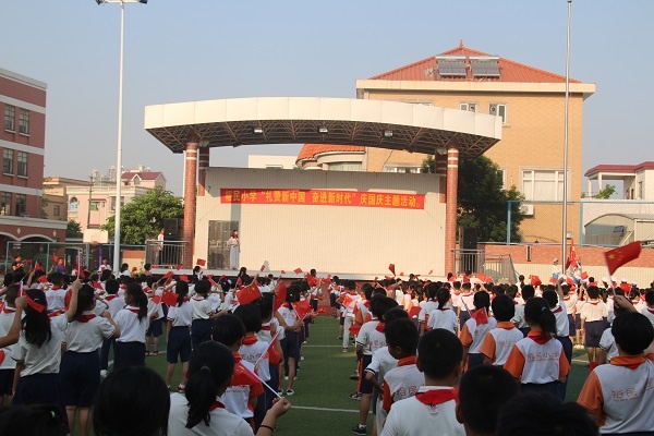 新中國即將走過70年,在中國共產(chǎn)黨的領(lǐng)導(dǎo)和五星紅旗的指引下,中國人民上下求索,開拓創(chuàng)新,走向繁榮昌盛、和諧富強(qiáng)!在活動(dòng)的最后全校師生向祖國、向五星紅旗致敬,齊聲高呼:祖國萬歲!祖國萬歲!