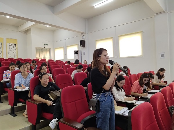 第三環(huán)節(jié)是由裕民小學(xué)蔣陽曄老師進(jìn)行教材分析。蔣老師在精心研讀教材的基礎(chǔ)上,對教材進(jìn)行了細(xì)致解讀,既有整體大方向的指引,更重要是她理論聯(lián)系實際,結(jié)合具體的課例深入淺出的給老師們展示她對教材中具體課文的分析,給老師們提供了具體可操作的方法指導(dǎo),她的講座給大家?guī)碜x的不僅是對教材更深入的認(rèn)識,更是對與會老師一種對課堂教學(xué)思維的啟發(fā)。