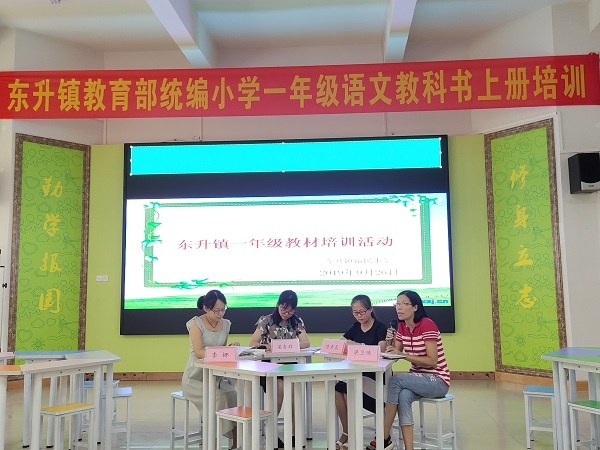 為了更好的把握部編版教材特點,提升教育教學(xué)質(zhì)量,東升鎮(zhèn)小語中心教研組策劃了一、二、三3個年級的教材培訓(xùn)。9月27日由東升鎮(zhèn)裕民小學(xué)承辦了第二場培訓(xùn)活動——部編版一年級教材分析活動。參加此次培訓(xùn)活動的有鎮(zhèn)小語中心組成員,裕民小學(xué)溫小玲副校長,及東升鎮(zhèn)全體一年級教師。