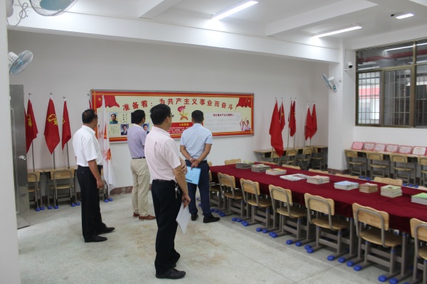 督導(dǎo)組和鎮(zhèn)文體教育局領(lǐng)導(dǎo)來到學(xué)校后,在華盛學(xué)校校長王英普、主管德育的副校長李安科的帶領(lǐng)下,首先從校容校貌和校園文化建設(shè)方面,分別巡視了校園文化墻,學(xué)校食堂以及《社會主義核心價(jià)值觀》、《中小學(xué)生守則》、《小學(xué)生日常行為規(guī)范》、《辦學(xué)思想》、《辦學(xué)目標(biāo)》和《校風(fēng)、教風(fēng)、學(xué)風(fēng)》的展示櫥窗,再到教室文化布置和環(huán)境氛圍等。均給督導(dǎo)組留下了深刻的印象。接著,督導(dǎo)組領(lǐng)導(dǎo)查看了學(xué)校的黨員活動室、少先隊(duì)活動室、班主任工作室、心理輔導(dǎo)室、廣播室和監(jiān)控室等硬件建設(shè)方面,督導(dǎo)組對華盛學(xué)校在德育的環(huán)境和經(jīng)費(fèi)保障方面給予了充分肯定。