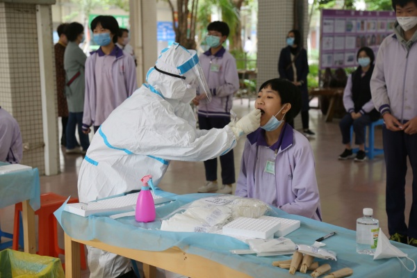 筆者觀察到,在24日上午10:30左右,負(fù)責(zé)采樣的醫(yī)療檢測(cè)公司就已經(jīng)完成了該校497名初三學(xué)生的核酸檢測(cè)采樣。另外,在東升中學(xué)采樣點(diǎn)進(jìn)行采樣檢測(cè)的,除了東升中學(xué)初三的學(xué)生之外,還有在東升鎮(zhèn)生活的現(xiàn)在在讀的各校高三學(xué)生850多人。之所以采用這樣“就近原則”,是為了減少不必要的人員遠(yuǎn)程流動(dòng),確保學(xué)生健康安全。據(jù)悉,樣品將被送到廣州檢測(cè),兩天之內(nèi)將全部公布檢測(cè)結(jié)果。