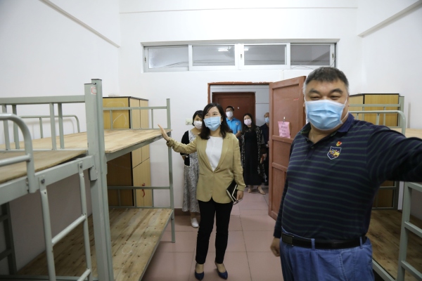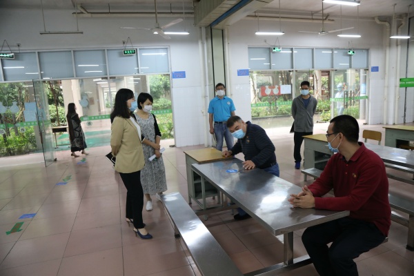 楊戈鎮(zhèn)長一行首先聽取了東升中學(xué)吳耀光校長對師生狀況排查、復(fù)學(xué)復(fù)課安排、防控物資準(zhǔn)備情況以及復(fù)學(xué)前準(zhǔn)備工作的匯報。然后實(shí)地察看了門崗、臨時觀察室、教室、飯?zhí)?、學(xué)生宿舍等重點(diǎn)區(qū)域的疫情防控措施落實(shí)工作,詳細(xì)了解了東升中學(xué)初三級復(fù)學(xué)返校、防疫物資儲備、食宿安全管理等各項工作準(zhǔn)備的落實(shí)情況。楊戈鎮(zhèn)長對學(xué)校的疫情防控和復(fù)學(xué)準(zhǔn)備工作予以充分肯定,并對進(jìn)一步做好下一階段相關(guān)工作作了指導(dǎo)。