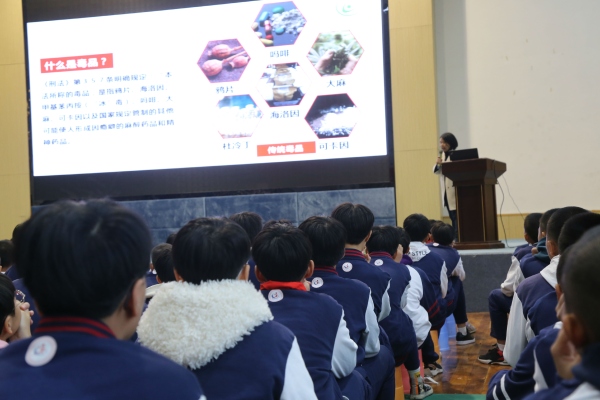 郭曉明老師采用圖片、視頻展示和知識競賽的形式,運用大量翔實的數(shù)據(jù)和生動的案例,重點講解了毒品的定義、種類、特征等知識,深入剖析了毒品,特別是新型毒品的危害,教育廣大青少年如何抵制誘惑,遠(yuǎn)離毒品,引導(dǎo)大家樹立正確的人生觀,同時勉勵大家在了解毒品危害的基礎(chǔ)上,向身邊的親朋好友積極宣傳。郭老師的講座既生動活潑,又細(xì)致務(wù)實,深受廣大師生的歡迎。