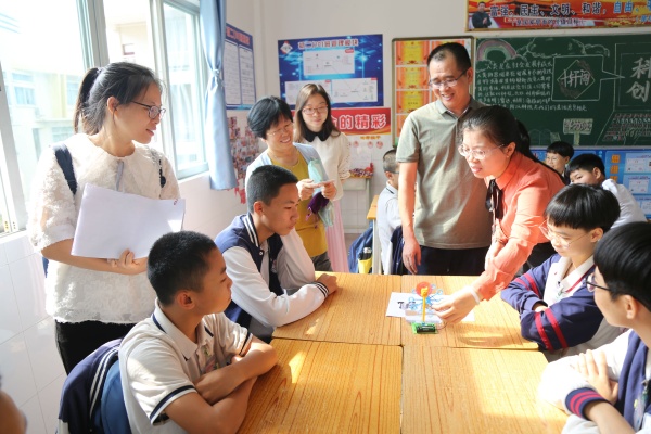 為更好地響應(yīng)東升鎮(zhèn)推動(dòng)德育“一校一特色、一班一亮點(diǎn)”工作號(hào)召,東升中學(xué)積極開(kāi)展特色班級(jí)建設(shè)工作。11月12日上午,東升鎮(zhèn)特色班級(jí)評(píng)估5人小組在東升鎮(zhèn)教育事務(wù)指導(dǎo)中心德育專(zhuān)干羅燕珍老師的帶領(lǐng)下,對(duì)東升中學(xué)初二(10)班(亦稱(chēng)“十軒閣”和“華為班”)申報(bào)“特色班集體”進(jìn)行了實(shí)地評(píng)估和考察。該班班主任劉瓊玉老師組織學(xué)生在課堂進(jìn)行了題為《信息引領(lǐng)發(fā)展,德育借“翼”(e)飛行》的特色項(xiàng)目展示,獲得了評(píng)估組老師們的高度贊揚(yáng)。本次“實(shí)地考察”是東升鎮(zhèn)“特色班集體”評(píng)比的第二階段。參加此次活動(dòng)的還有德育處馮釗順副校長(zhǎng)、黎洪鋒主任、陳偉副主任、黎國(guó)明副主任和東升中學(xué)班主任工作室主持人葉永春老師。