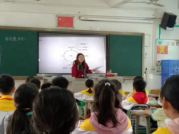 第二個環(huán)節(jié),由主講老師說課。王老師根據(jù)教學目標把整節(jié)課的教學思路和設計展示出來,與參聽老師一起分享。在如何上“圓的整理復習”這樣的課,王老師根據(jù)教材特點和學生的情況也說出自己的方法和觀點,對教本和學生進行了深入地備課。