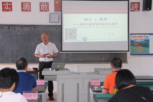 本次培訓會特邀請中山市教師進修學院院長高科老師前來開展講座。會議伊始,高科院長率先為老師們作題為“初心,使命----新時代教育者的使命與堅守”的專題培訓講座。不忘教育者的初心,牢記教書育人的使命。高院長以教育家陶行知的人生經(jīng)歷為例,講述陶行知先生不忘身為平民教育者的初心,堅守使命,為教育奉獻一生的故事。陶行知在海外求學,堅持回國報效,追求培養(yǎng)“人民中的教師”的奮斗目標,一心投入了教書育人的偉大事業(yè)。高院長以平民教育者孔子與陶行知的例子,激勵全體教師牢記教育使命,避免在功利化的機制中迷失了教育的初心,堅持為國家的基礎(chǔ)教育事業(yè)發(fā)展奮斗。同時,高院長引導(dǎo)老師們從家長的角度考慮,做更有愛心、耐心、責任心的教師。家長把孩子交給了學校,就是對學校、對國家教育當局的信任。因此,人民教師應(yīng)當明白自己的重要使命,不辜負家長的信任。