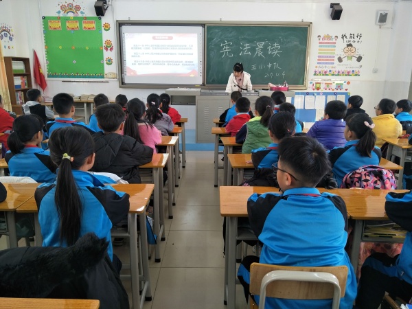 今早八點(diǎn),牛角小學(xué)各個(gè)班級(jí)就開始了憲法晨讀活動(dòng),低年級(jí)的孩子們認(rèn)真聽著老師講解憲法晨讀內(nèi)容,中高年級(jí)的孩子們手中拿著憲法晨讀內(nèi)容,在聽的過程中,學(xué)生就不明白的內(nèi)容舉手提問,老師都一一回復(fù),學(xué)生們對(duì)于憲法在國家法律中的地位更加明確。