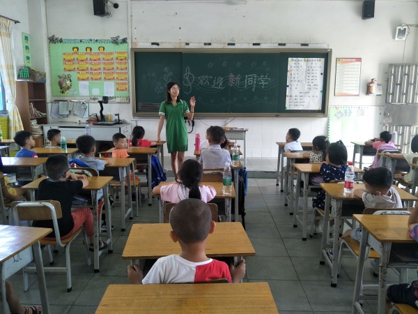 今天,孩子們?cè)诩议L的帶領(lǐng)下,來到新的班級(jí)。坐在課室里,活潑的孩子已經(jīng)迫不及待地和周圍的小朋友交朋友,靦腆的孩子也是坐在座位上,帶著好奇的目光打量著自己即將開啟學(xué)習(xí)生活的地方。在老師進(jìn)到班級(jí)后,和孩子們講了成為一名小學(xué)生的要求,還教會(huì)了孩子們?cè)谏险n時(shí)的一些小口令??梢钥吹贸鰜?,這些孩子們對(duì)上學(xué)也是有所期待。學(xué)會(huì)了這些,老師又帶領(lǐng)孩子們走出課室,來到校園里,認(rèn)識(shí)一下我們的校園,在未來的日子里,可以再操場跑步,在籃球場打籃球,可以在足球場和小伙伴們一起踢比賽,孩子們都很激動(dòng)。